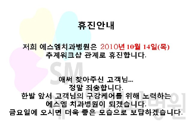 10¿ù 14ÀÏ(¸ñ) Ãß°è¿öÅ©¼¥ ÈÞÁø¾È³»